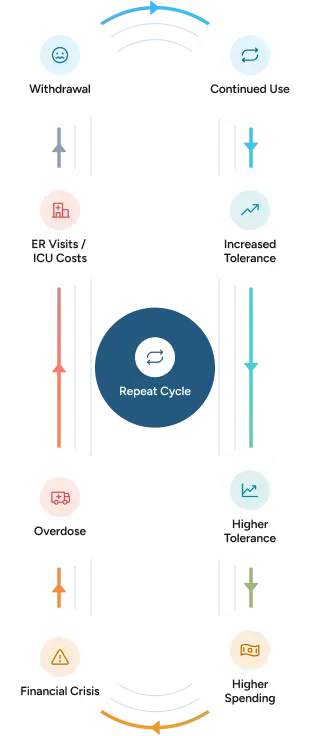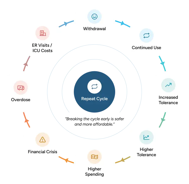Opioid use creates a cycle that becomes more expensive over time: