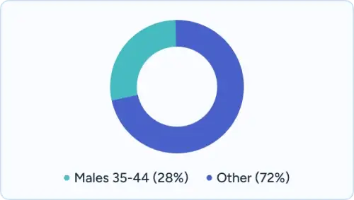 Males aged 35-44¹ represent highest risk (28% of deaths)