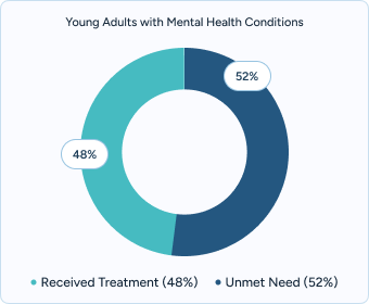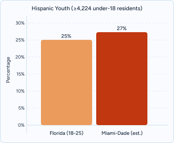 Unmet treatment needs: Despite improvements in provider availability, fewer than half of young adults with a diagnosed mental health condition in Florida received treatment last year. In Miami-Dade, access gaps are most pronounced among college students, LGBTQ+ residents, and immigrant populations.